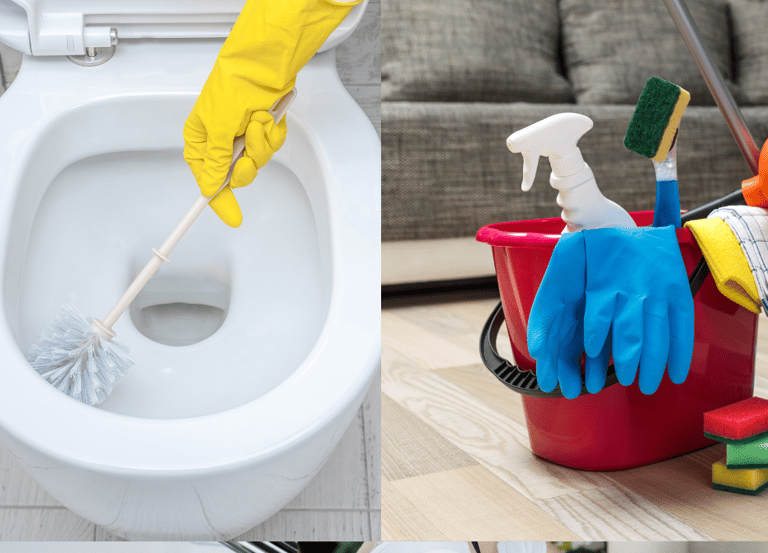 ✔️ Cleaning bathrooms (toilets, sinks, mirrors, showers)